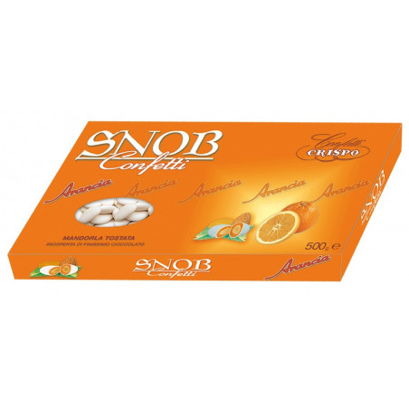 Ingredienti - parte interna: mandorla tostata (30%), Copertura: Cioccolato bianco ( Zucchero, burro di cacao, latte in polvere, emulsionate: lecitina di soia, aroma:vanillina). Aroma arancio: "Aromi Naturali". Addensante: E414-E407", "Acidificante: E330","Coloranti:E120-E100E160b".